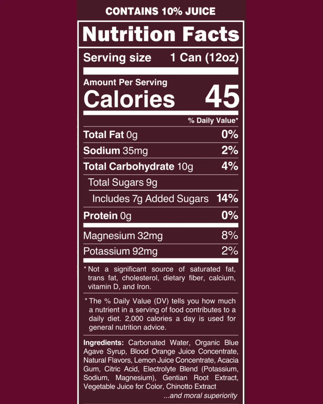 - Calorie Conscious: Only 45 calories per can with 9g of sugar.