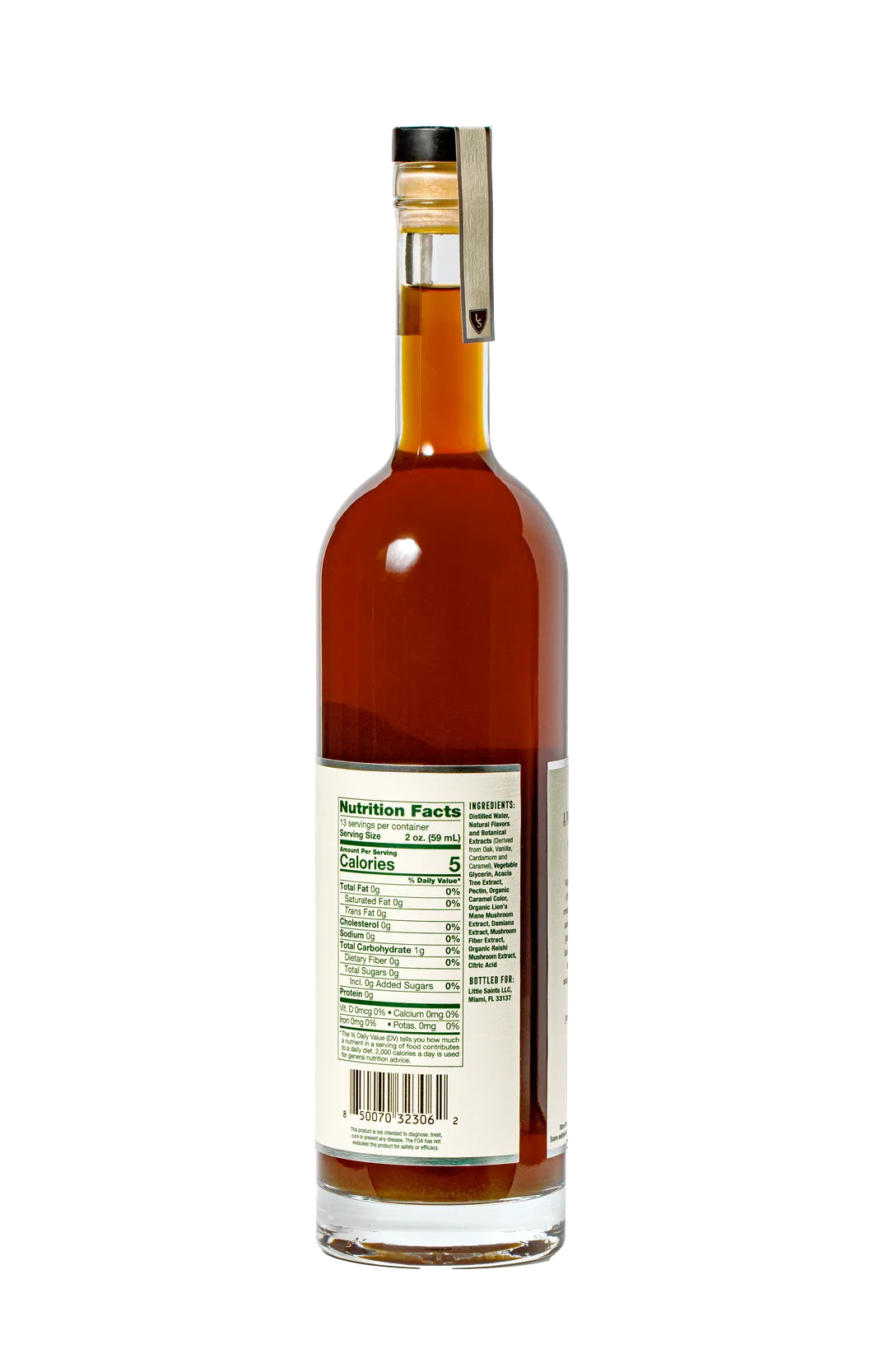Ingredients: Filtered Water, Natural Flavors and Botanical Extracts (including Palo Santo*, Ginger and Cardamom Extracts), Acacia Tree Extract, Organic Lion’s Mane Extract (min. 70% beta glucan), Potassium Sorbate (for freshness, less than 0.1%).