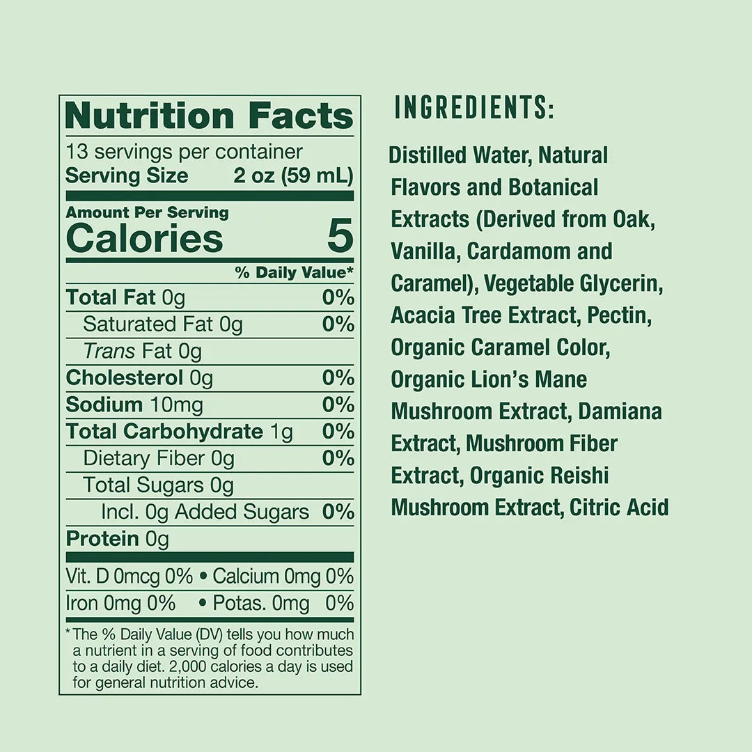 Enhanced with a trifecta of functional ingredients—Lion's Mane, Reishi for calm, for clarity, and Damiana for ease—this spirit softens your edges without dulling your shine. Best enjoyed neat in your finest glassware, or mixed into a classic Manhattan or Old Fashioned, this innovative spirit is in a class of its own.